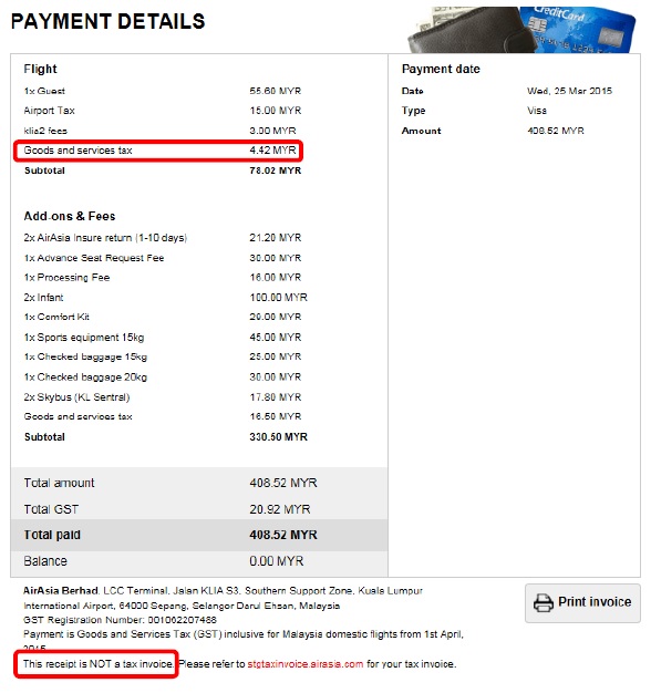 Simplified tax invoice which does not have the name and address of the recipient, the maximum of input tax to be claimed must not exceed rm30.00 (6 the invoice serial number. All companies who have registered with royal customs malaysia (rmc) must issue tax failure to issue correct tax invoice may result in fine & penalty of not more than rm300,000 or imprisonment of not more than 2 years or both. In malaysia, a tax invoice is the standard invoice format required under the gst system. Malaysia does not tax capital gains from the sale of investments or capital assets other than those related to land and buildings. A threshold represents a requirement for any. The summary is to assist our customer or debtor that aren't using accounting the default format provides every element shown on your example, just in a different physical layout. Online tax invoice is available from the ticket purchase date until one week after your flight departure. There are various taxes that you will need to bear in mind if you are planning on relocating to malaysia, and wish to draw up a budget and have a better idea of your net salary. Malaysia airlines checked baggage allowance. Therefore, whether you are a malaysian or a foreign national, as long as you reside in malaysia for less than 182 the income tax filing process in malaysia. Full refund if the cancellation reasons come under. International tax agreements and tax information sources. By continuing to use flysaa.com you will be agreeing to the website terms and conditions, the privacy policy, and the use of cookies while using the website.